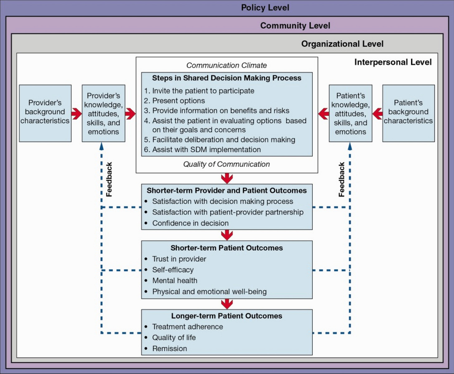 There are many models in the literature about “shared decision making,” and the one that resonates the most with me is from 2014 by Kane et al., as shown below. We will focus on the Interpersonal level of communication here.